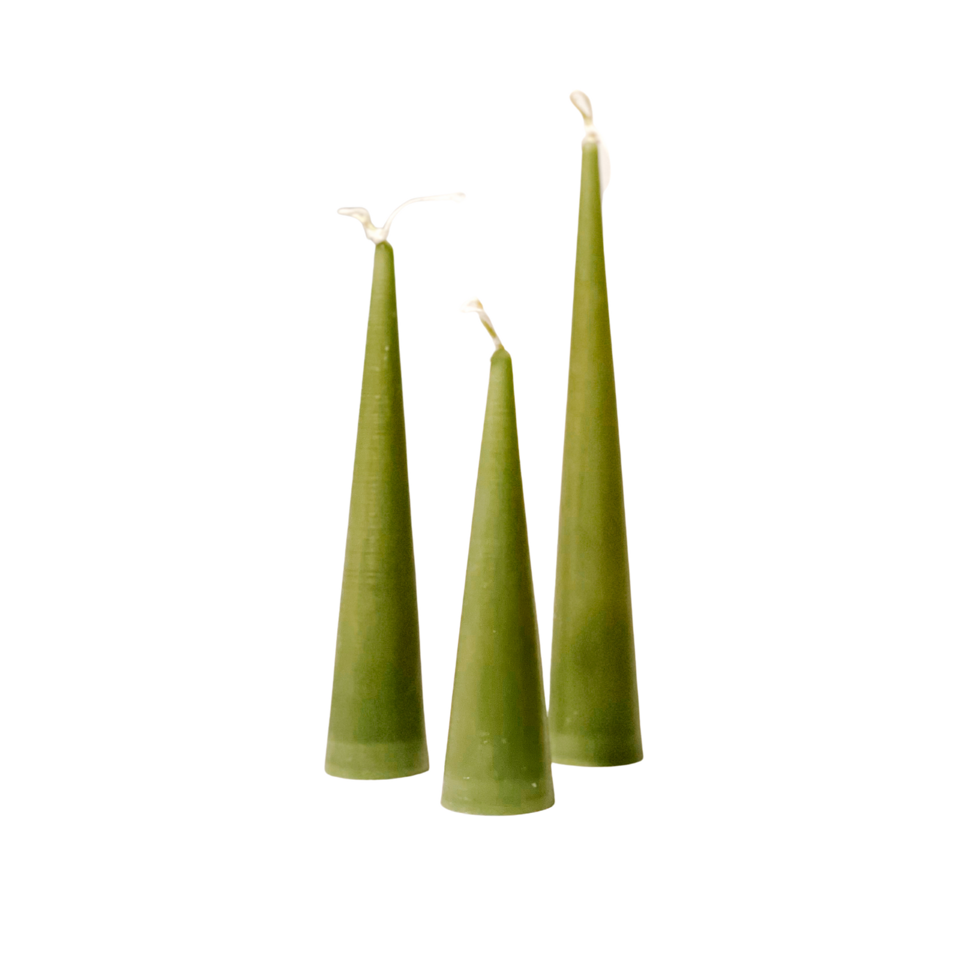 If raising the vibration in your home is important to you, the Cone Taper Beeswax Candle in Olive was made for you! 🕯️